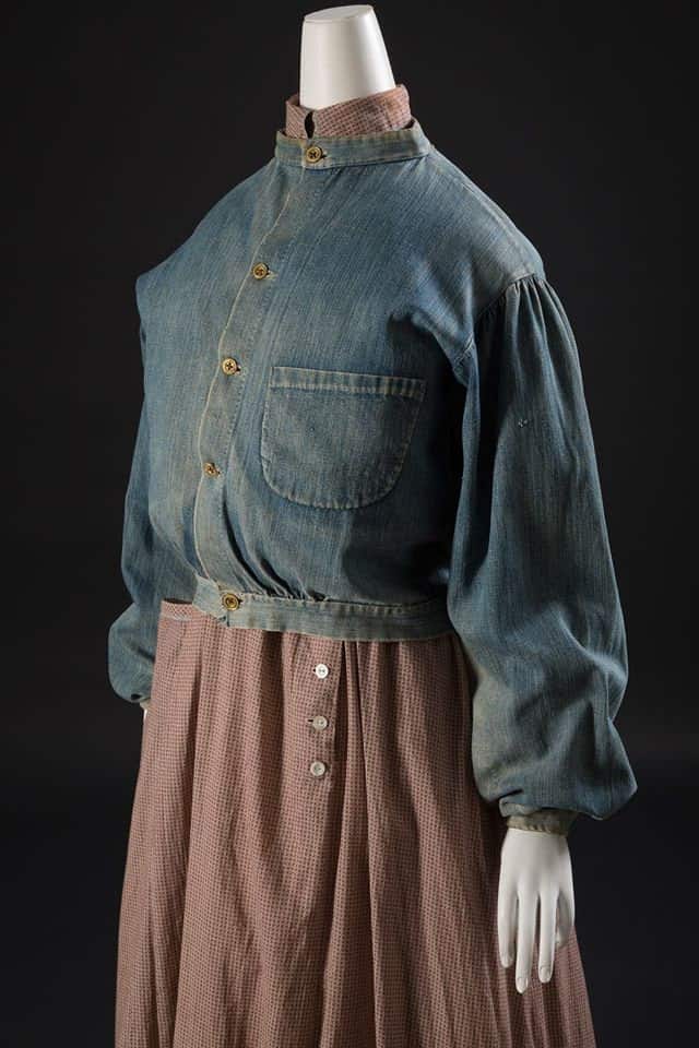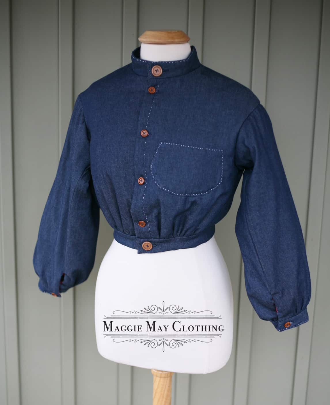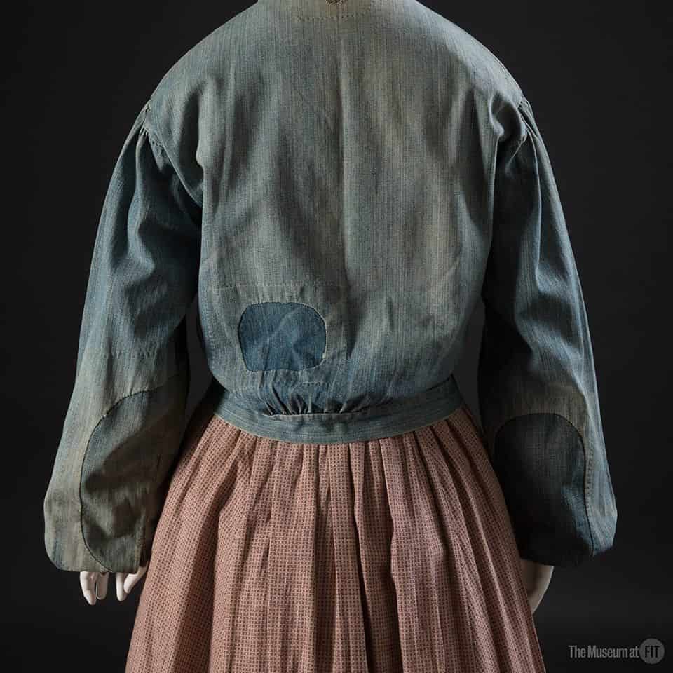 This reproduction women’s denim jacket is a custom designed/custom commissioned 1850s era piece based on this original in the collection of FIT.