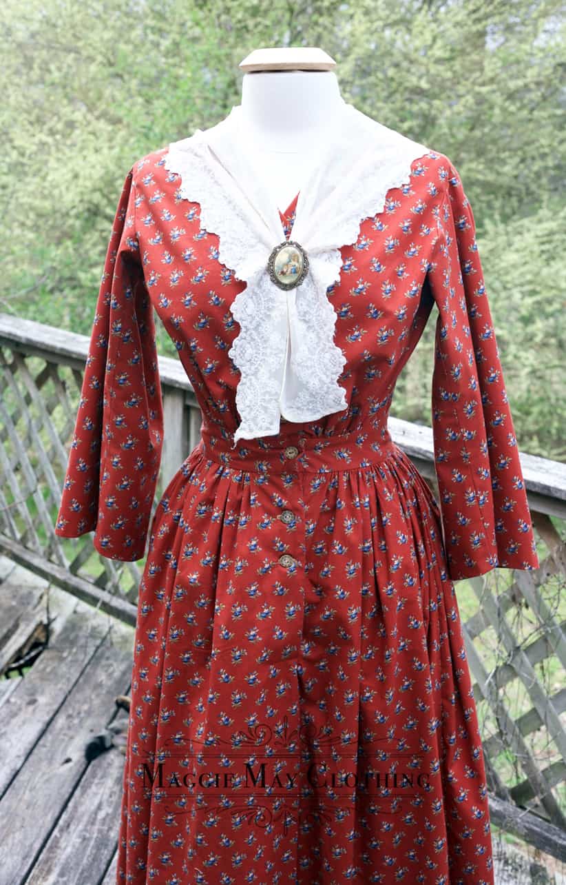 For more information about our 1870s era homesteader dress, please visit our website at www.maggiemayfashions.com