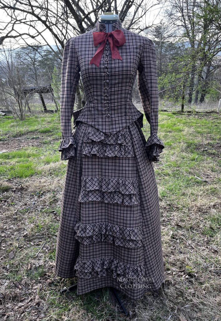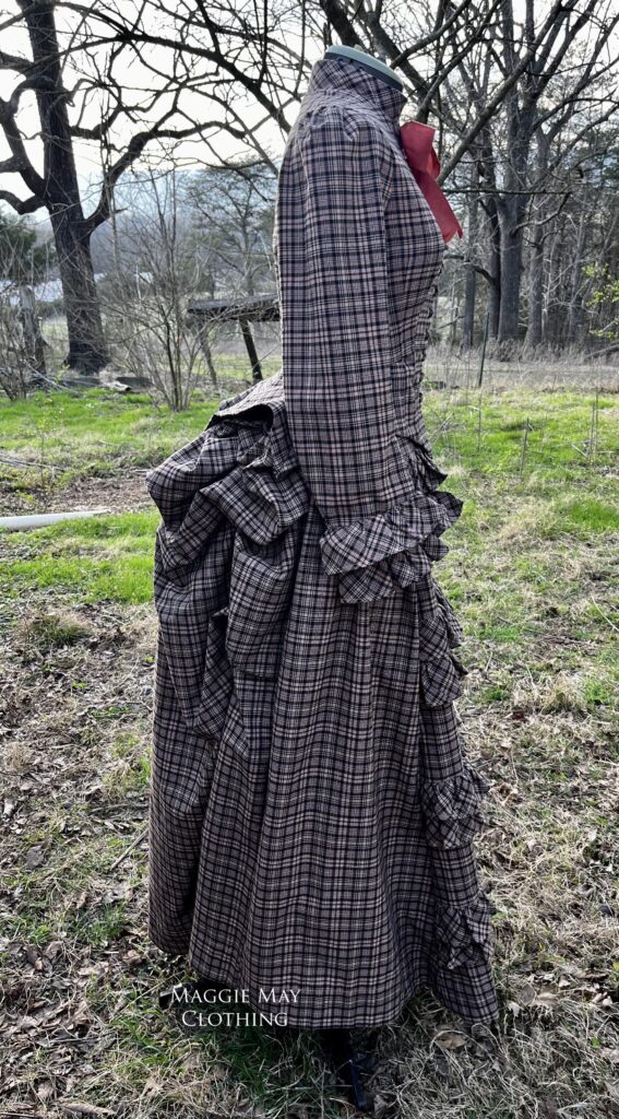 We designed this beautiful 1880s era plaid cotton dress for an autumn museum exhibit. This 1880s era bustle gown is also our 2024 DRESS OF THE YEAR! Read on to find out why!