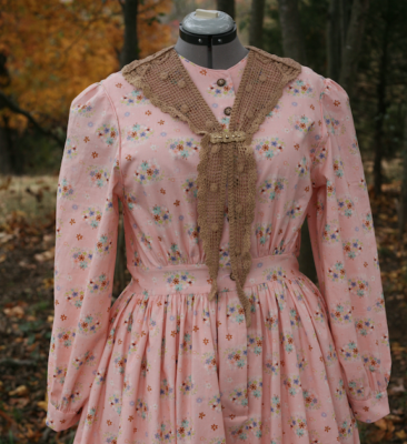 We made this lovely Young Lady’s Autumn inspired 1840s era work dress for Historic Exchange Place in Kingsport, Tennessee. We didn’t have quite enough fabric for a full dress so we got a little creative and added a complementary warm…