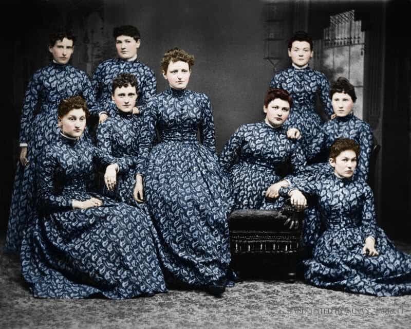 Calico Balls (often called Grand Calico Balls) originated in the mid 19th century and served as benevolent social gatherings. Ladies and gentlemen of middle and upper middle class would forego their fancy silks and satins for the evening and instead don much simpler gowns and ties made from humble cotton calico. Afterwards, calico ballgowns were donated to local charities. Calico Balls reached their heyday in the 1870s and lasted well into the early 20th century.