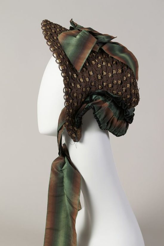 Throughout the entire Victorian period, the bonnet ruled the day as head wear. In the 1860s, younger ladies and ladies of fashion included a variety of hats into their wardrobe. Other head coverings worn in this period included lace or muslin day caps, ribbons, and jeweled hair ornaments.