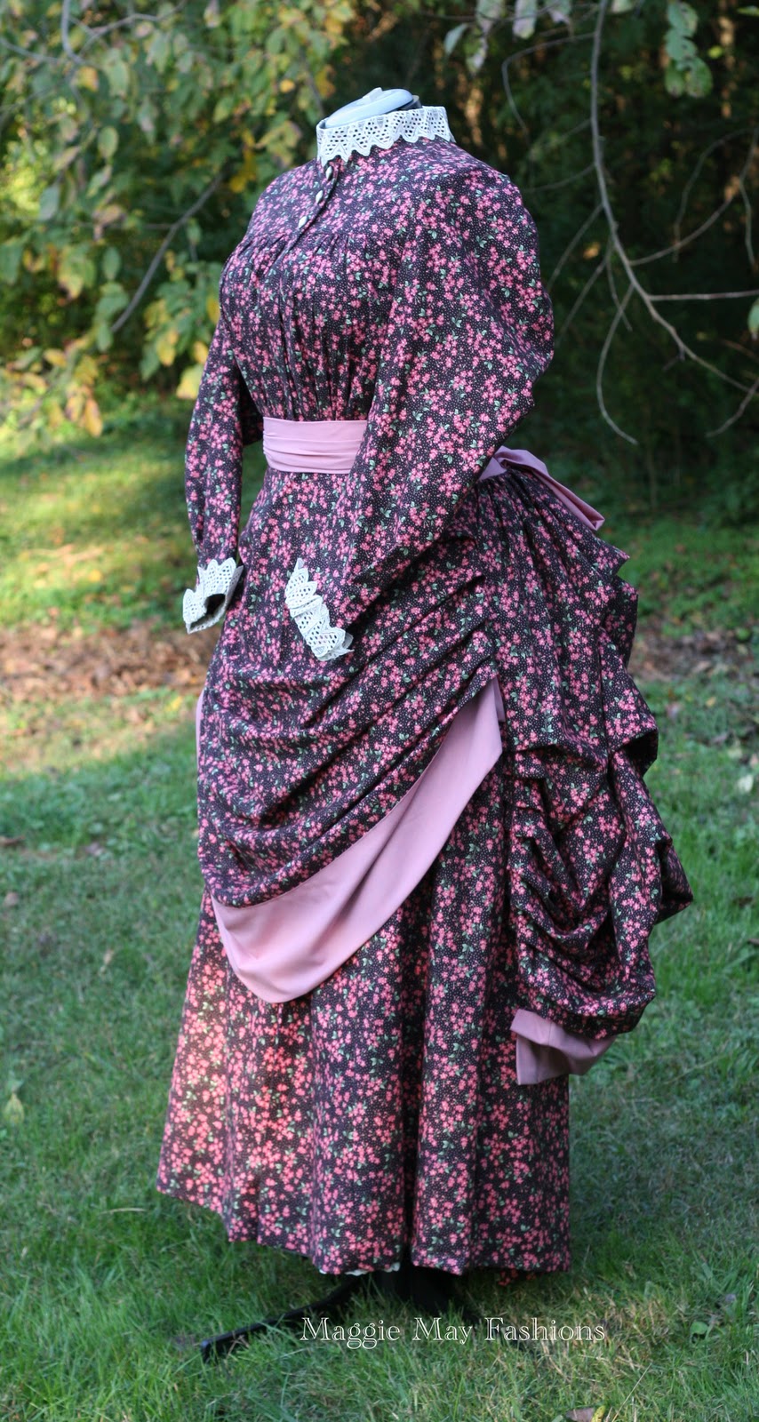 I will top off the ensemble (quite literally) with a simple straw hat trimmed 1880s style in pink and brown (still in progress).