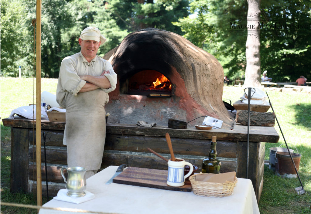 The first vendor who caught my eye was Half Crown Bakehouse from South Carolina. Their mobile 18th century oven was pretty amazing! They built it on a trailer and hid the modern flat bed with some really nicely- made wooden panels. The gentlemen said the oven weighs a whopping 6000lbs and I can imagine what hauling it is like. But they were one of my favorite spaces at the festival so of course I had to bring home a round loaf of fire baked bread.