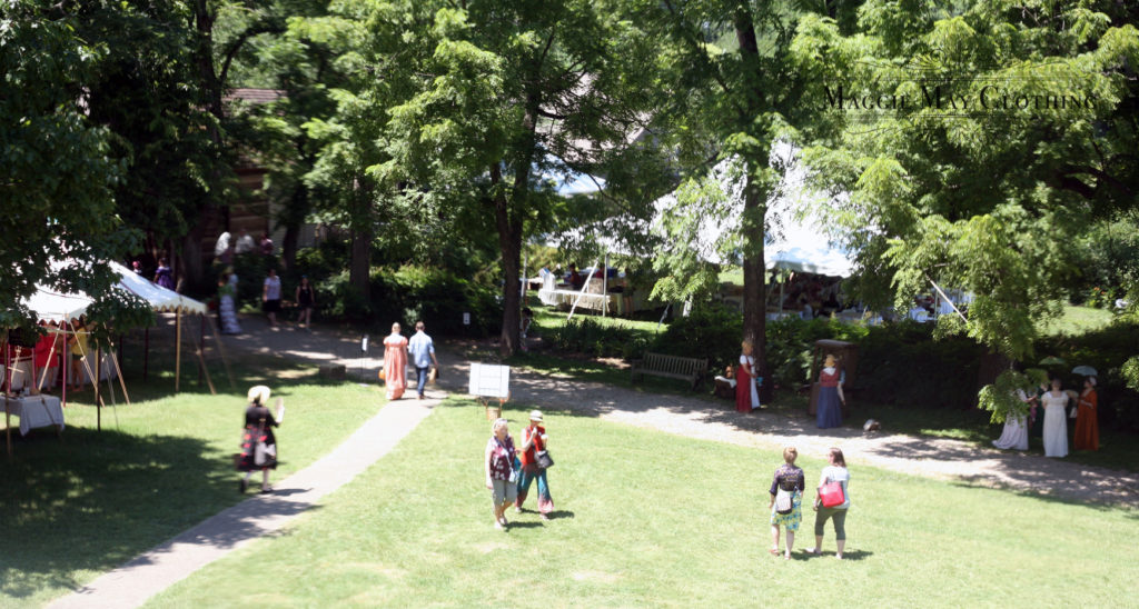 Overall, the Jane Austen Dresstival in Louisville, Kentucky was quite lovely. I can see why historical costume enthusiasts rate it as one of their top “go-to” events. The atmosphere was light and jovial. People in attendance genuinely seemed to be having a good time. There were ladies of all ages mingling about in groups. There were quite a few men there too- more than I expected to see actually. A handful of children were also in attendance- making this a semi family friendly event. (Most activities are geared toward adults or older children). The weather was somewhat pleasant (it is JULY in the upper South after all…..) and by 3:00pm, as the heat of the day pressed upon us, we were ready to wrap up our experiences at Historic Locust Grove and bid farewell to the JA Fest. Perhaps we will go back again sometime. And maybe someday I will get to hear Cristina Barreto speak about her book.