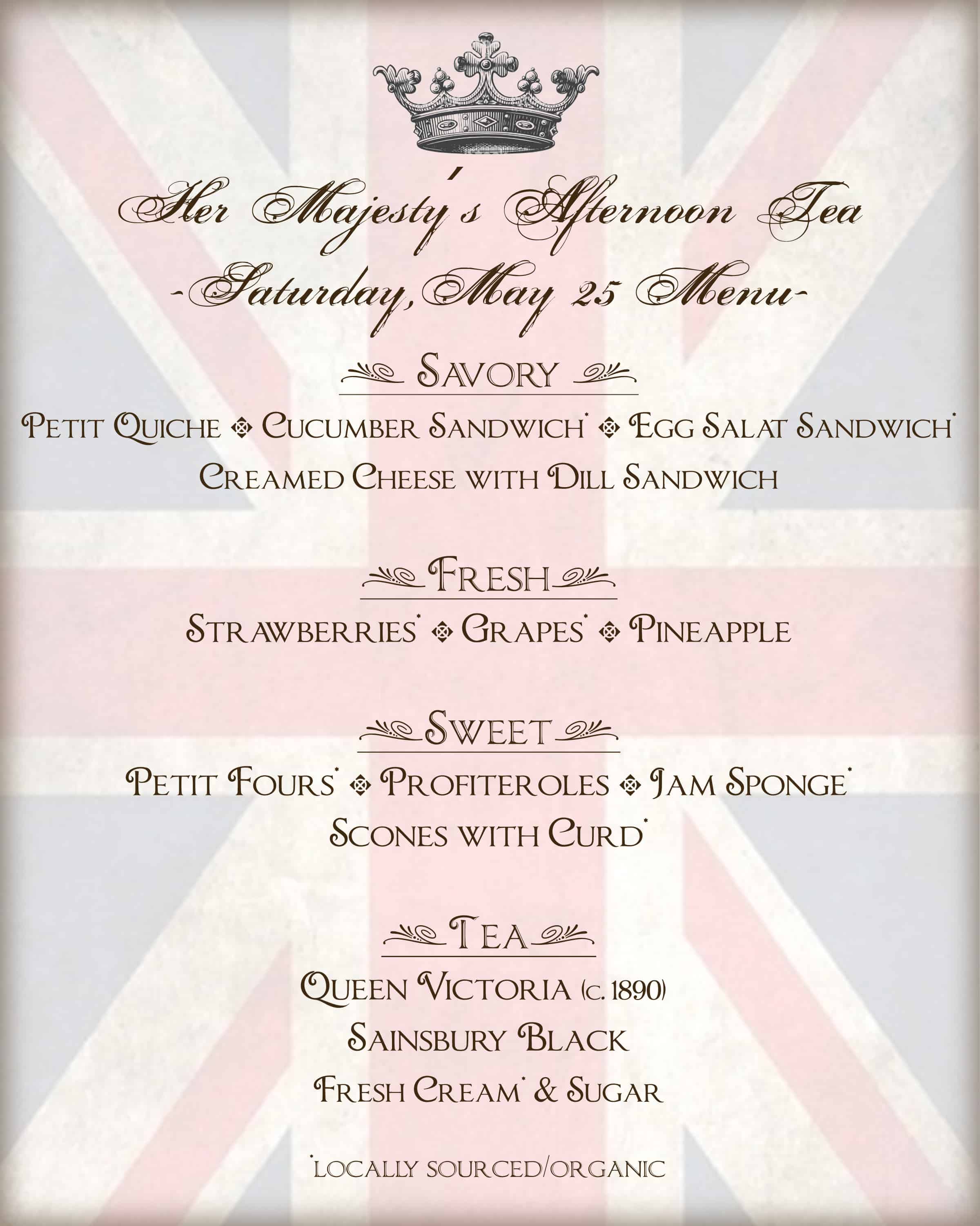For your dining pleasure- We are proud to share our menu for Queen Victoria’s 200th Birthday Tea!
