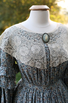 I recently put together this 1840s era work dress based on drawings from the Workwoman’s Guide by a Lady. I used pattern #017 by Saundra Ros Altman of Past Patterns. The Workwoman’s Guide refers to the cut of this dress…