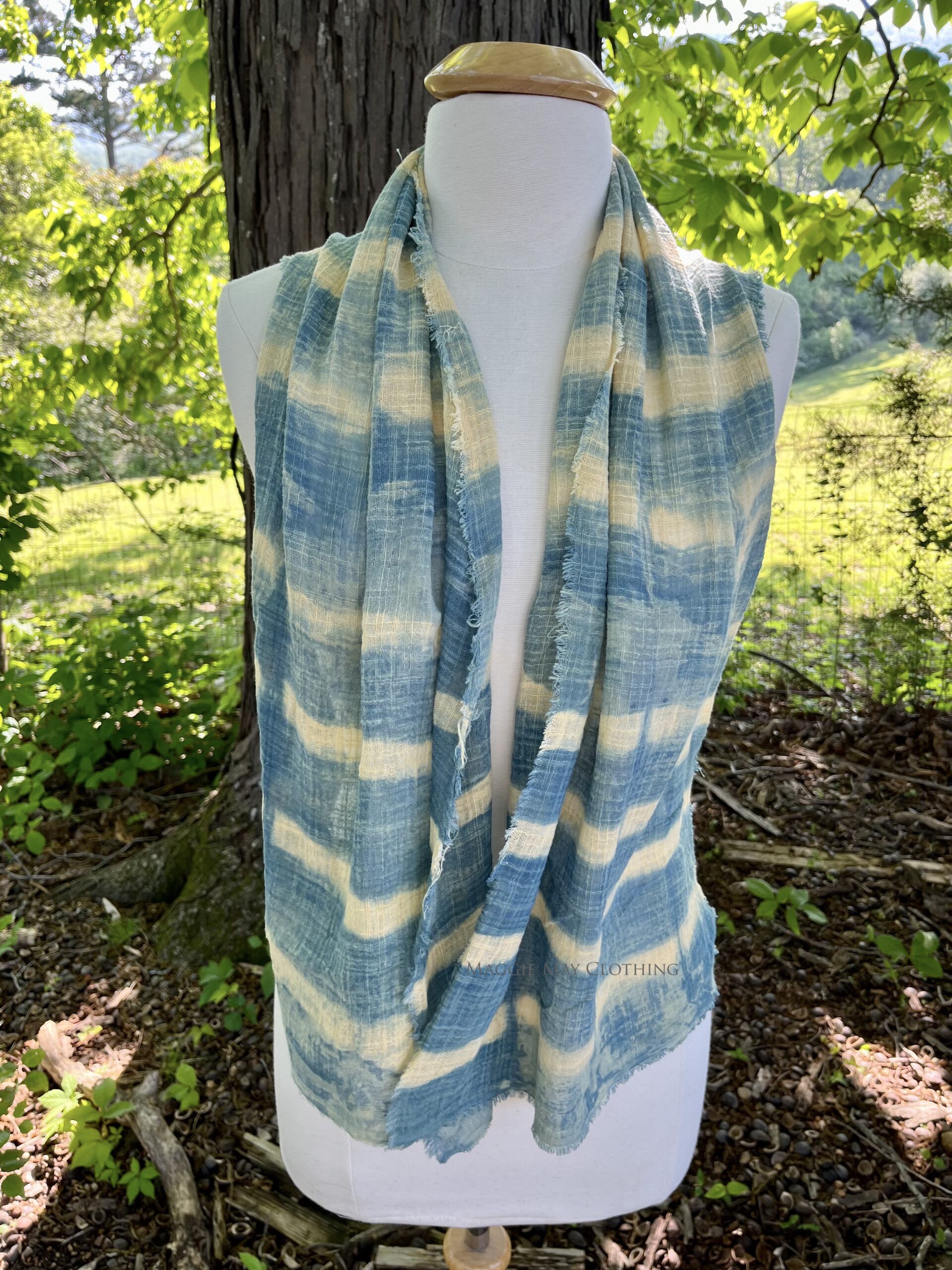This oh-so-soft, semi sheer, and breezy naturally dyed indigo scarf was made right here in our studio using centuries old natural dye techniques. Using historical practices of extracting color from the indigo plant, we have created a collection of textiles that look and feel very modern but originate from practices steeped in world history.