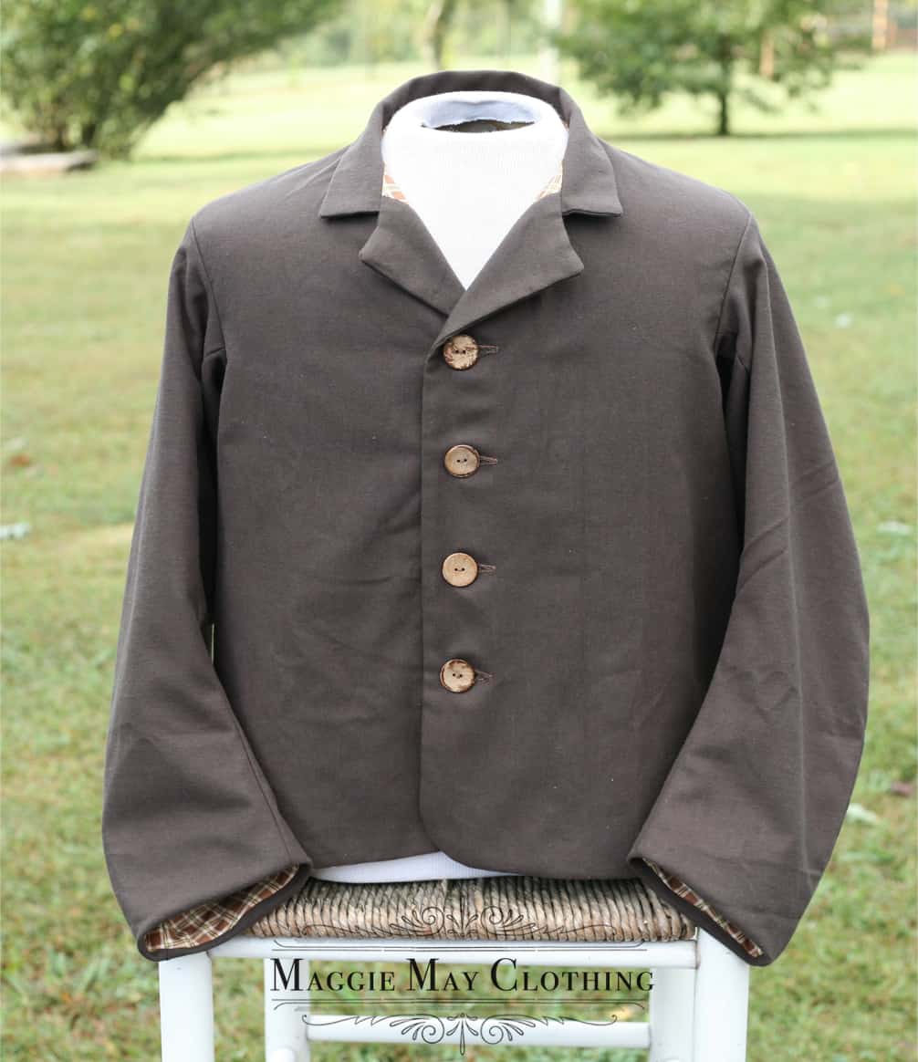 For more information about this teen boy’s sack coat or any of our custom made historical garments, please visit our website at www.maggiemayfashions.com