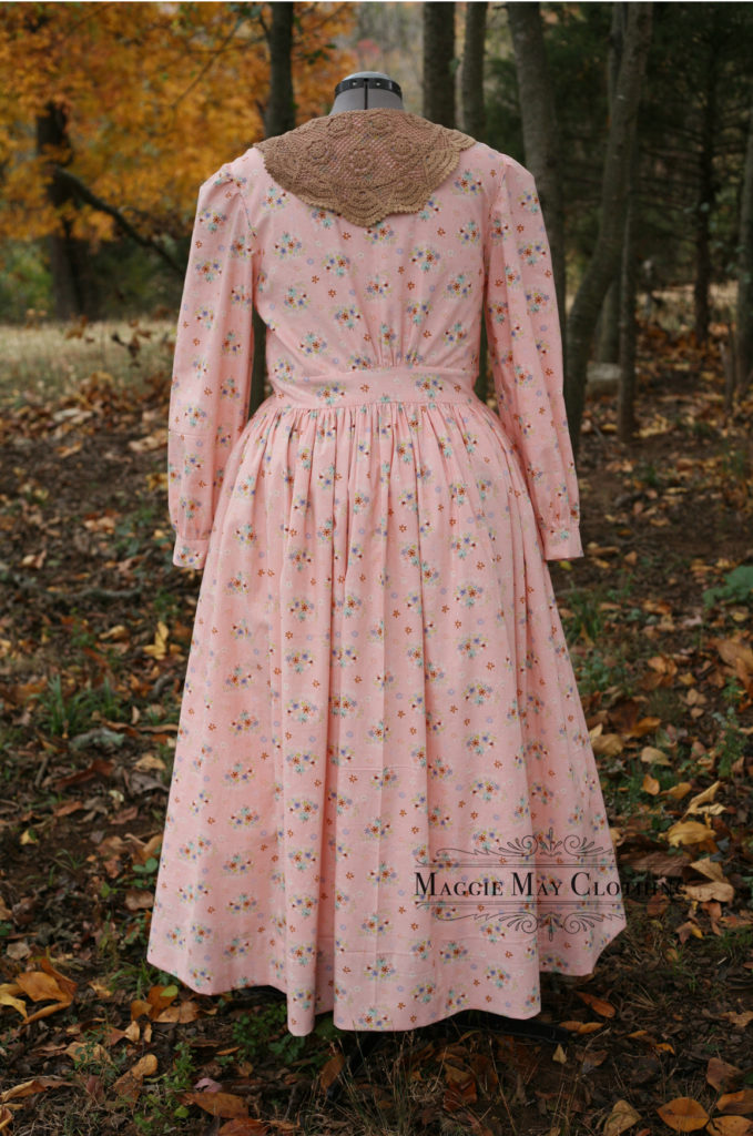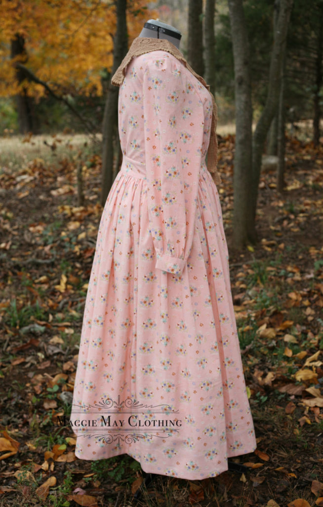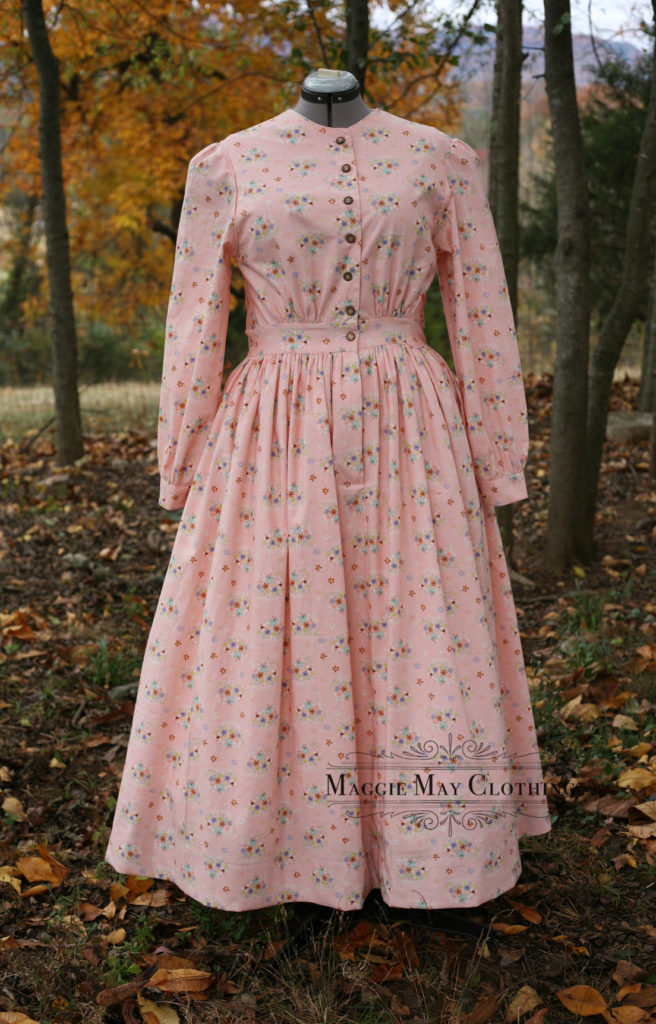 Here’s another look at some of our 2023 custom sewing commissions. This is our American South Dress in era appropriate cotton printed fabric. For custom commissions, our clients select from our fabric collection and commission us to sew one of our exclusive historical clothing designs for them!